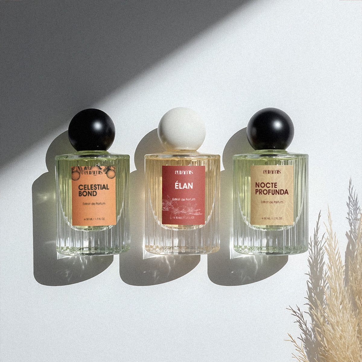 The Nocturnal Trio blends Nocte Profunda, Celestial Bond, and Élan, merging smoky oud and amber with radiant woody notes. A unisex perfume set crafted for those drawn to contrast, mysterious, magnetic, and effortlessly elegant.